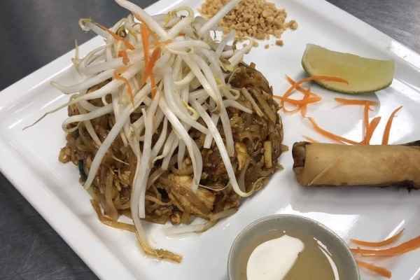Thin rice noodle, bean curd, bean sprouts, scallions, egg and…